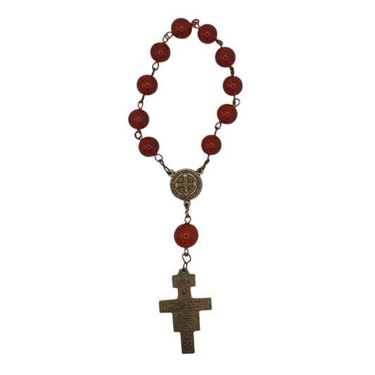 Handmade Single-Decade Rosary – Carnelian Beads, San Damiano Crucifix & St. Benedict Medal