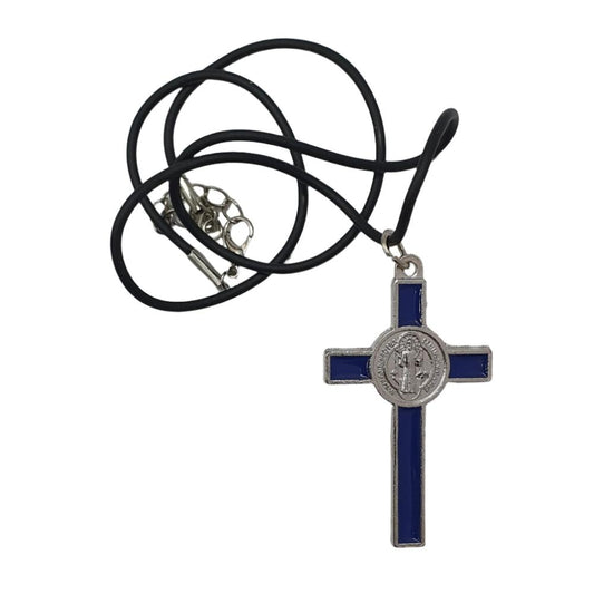 Metal and Blue Enamel St. Benedict Crucifix – 3 Inch