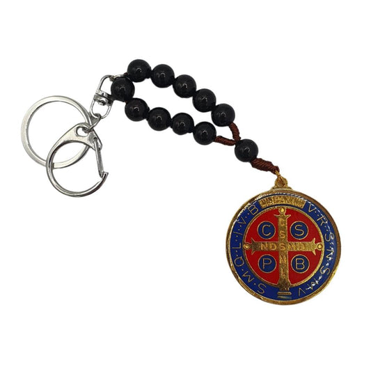 St. Benedict Keyring with Single Decade Rosary and Medal Explanation Card
