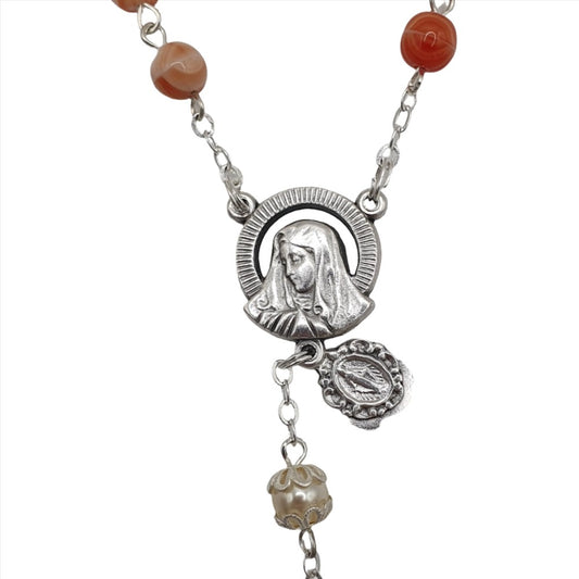 Pink Patterned Stone Rosary with Mary Centrepiece and Miraculous Medal