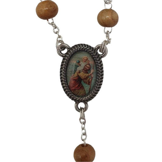 Olivewood Single Decade Car Rosary with St. Christopher Medal