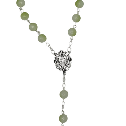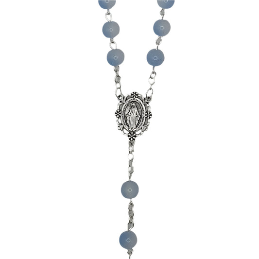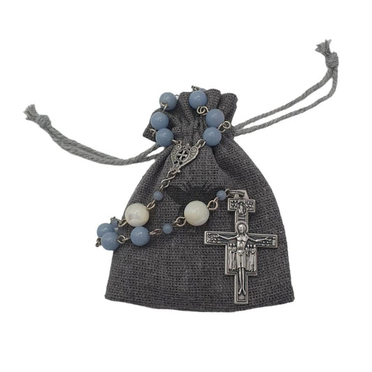 Handmade Angelite and Mother of Pearl Rosary with San Damiano Crucifix