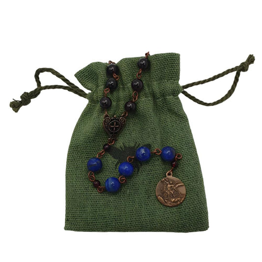 St. Michael’s Chaplet with Garnet, Lapis Lazuli Beads and Bronze St. Michael Medal