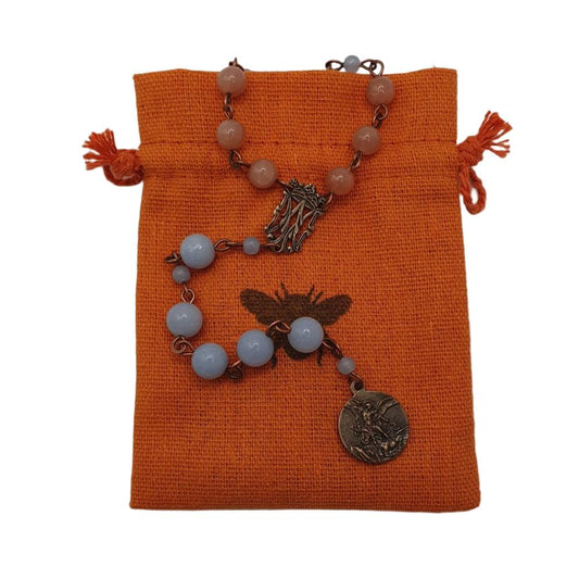 St. Michael’s Chaplet with Angelite, Sunstone Beads and Bronze St. Michael Medal