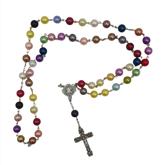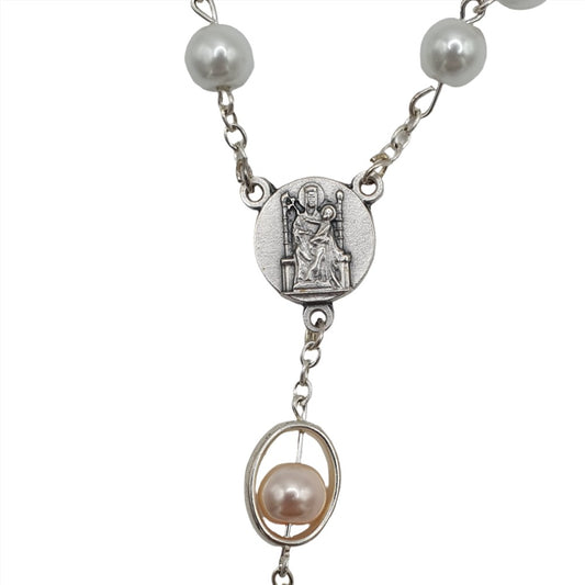 Imitation Pearl Rosary with Our Lady of Walsingham Centrepiece