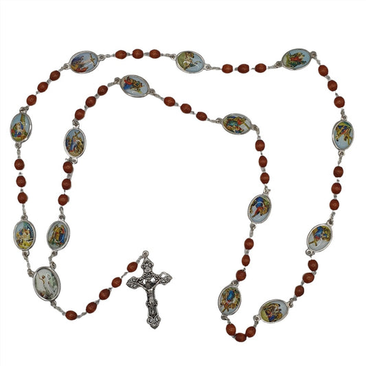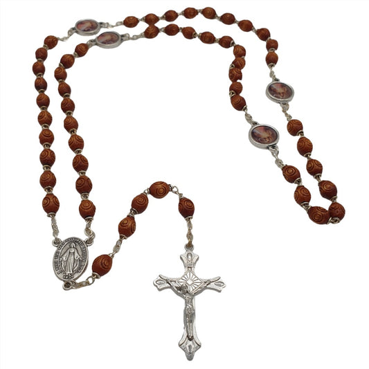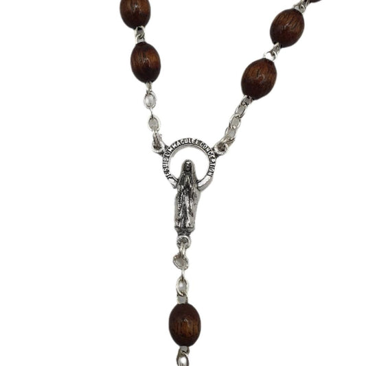 15-Decade Wooden Rosary with Metal Crucifix and Miraculous Centrepiece