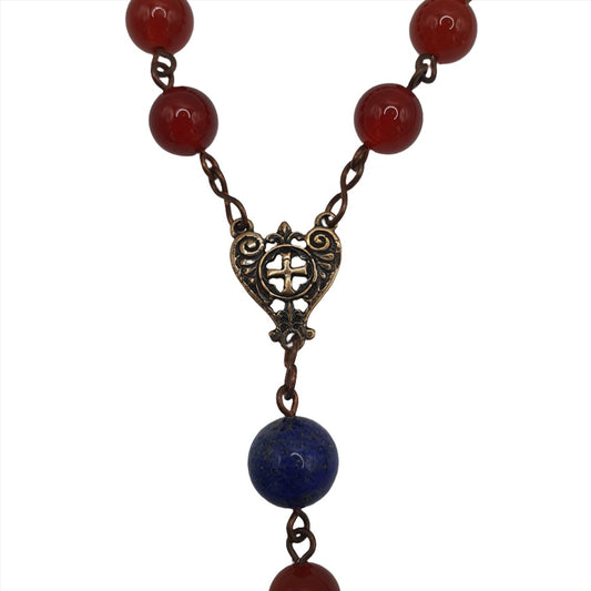 Bespoke Carnelian and Lapis Lazuli Rosary with Bronze Jerusalem Cross