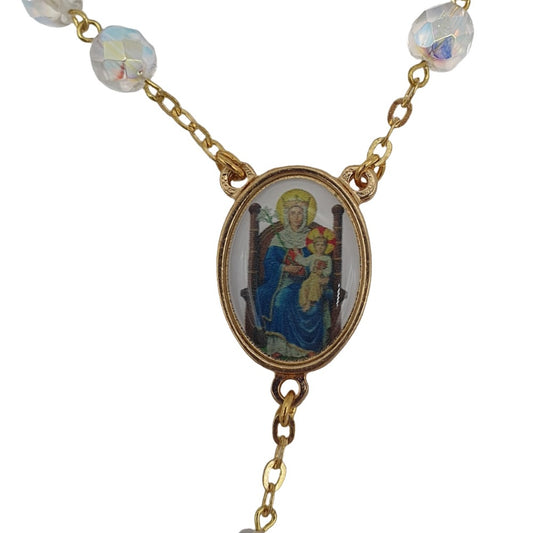 Our Lady of Walsingham Clear Crystal Rosary with Gold-Coloured Chain