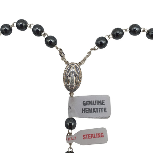 Sterling Silver Rosary with Hematite Beads - Spiritual Necklace for Prayer