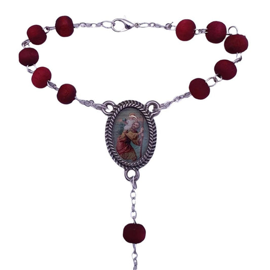 Red Perfumed Car Rosary – St. Christopher Centrepiece for Safe Travels