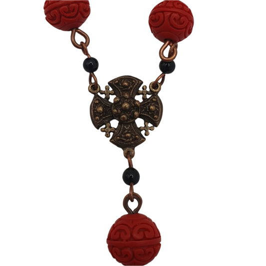 Handmade Cinnabar & Onyx Single-Decade Rosary